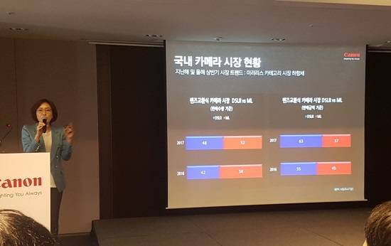 캐논은 이날 렌즈 교환식 카메라의 한 축을 이루는 미러리스 카메라는 공개하지 않았다. 렌즈 교환식 카메라 중 DSLR의 경우 올해 안정적인 수요가 예상되는 반면, 미러리스 시장은 다소 수축될 것으로 전망한 것.