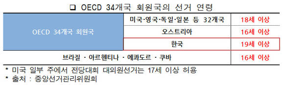 이어 "경제협력개발기구(OECD) 34개 회원국 중에서 대한민국만 유일하게 선거연령을 19세 이상으로 규정하고 있다"며 "18세 청소년은 이미 운전면허 취득, 결혼, 병역의무 이행 등의 책임과 의무를 부여받는 만큼 민주사회에서 가장 중요한 선거권을 허용해야 한다"고 역설했다.