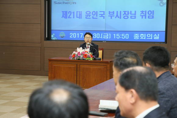 윤 부시장은 1974년생 사천시 서포면 출신으로 1999년 의령군에서 공직생활을 시작했다. 경상남도 농업지원과장, 행정국장 등을 역임했다.