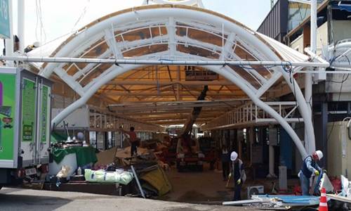 그 결과 지난 4월까지 건축물 구조보강공사가 완료됐고, 현재는 리모델링 공사가 진행 중이다. 시설복구에는 각계각층에서 답지한 성금 28억8000만원이 투입됐으며, 보험료 등 8억4000만원은 아케이드 설치에 사용됐다.