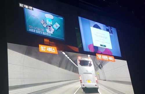 SLT는 KT의 LTE 기술을 KT스카이라이프의 위성방송에 접목해 운전 상황과 관계없이 고화질의 영상을 제공하는 서비스다.