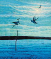 특히 '판도라의 상자' 제목의 두 작품은 상상 속의 동물인 유니콘이 설산 배경의 푸른 들과 바닷가를 질주하는 모습은 마치 이상향의 평화로움을 표현한 듯 하다.