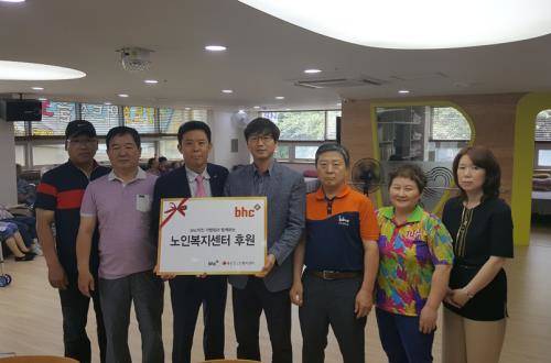 김종옥 bhc 본부장을 비롯해 bhc 대구 메가타운점, 성당본점, 용산점 3곳 가맹점주 등은 대구광역시 달서구에 있는 도원노인복제센터를 찾아 면역력이 약한 노인들의 건강한 여름 나기를 기원하는 의미로 치킨 나눔 행사를 펼쳤다.