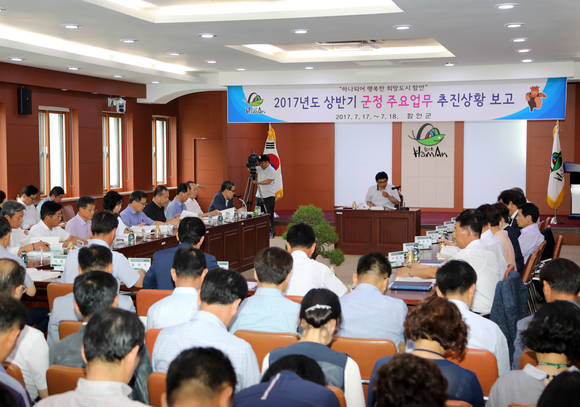 [프라임경제] 경남 함안군은 17일 김종화 함안군수 권한대행 주재로 실과·직속기관·사업소장 및 담당주사가 참석한 가운데 '2017년도 상·하반기 군정 주요업무 추진상황' 보고회를 개최했다.