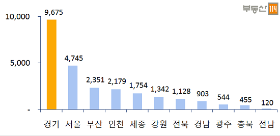 이 가운데 전국 분양 예정 물량의 38%가 집중된 경기는 시흥 계수동 '시흥은계제일풍경채(B4)' 429가구, 이천 마장면 '이천마장호반베르디움1차' 442가구 등 9675가구가 분양할 것으로 집계됐다.