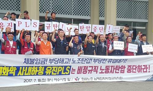 [프라임경제] 여수국가산단 남해화학 협력업체가 부당노동행위와 노조탄압에 대해 강력히 규탄하고 나섰다.