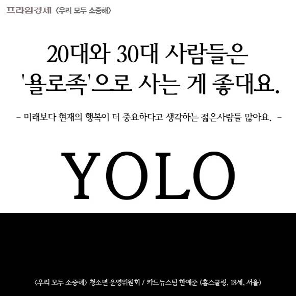 [우리모두뉴스: 카드] 20대와 30대 사람들은 '욜로족'으로 사는 게 좋대요