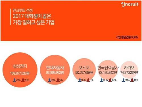 한편 인크루트는 최근 자사 회원 중 구직 준비 중인 대학생 1015명을 대상으로 '2017 대학생이 가장 일하고 싶은 기업'에 대한 설문조사를 실시했다.