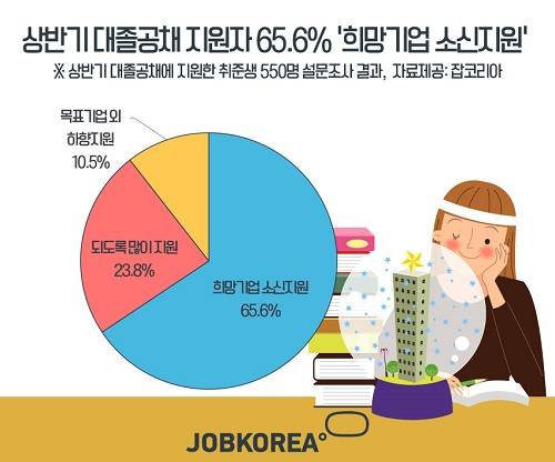 '희망 여부에 관계없이 되도록 많은 곳에 지원서를 냈다'는 응답은 23.8%에 그쳤으며, '목표 기업 외에도 될 만한 기업에 하향 지원했다'는 응답 역시 10.5%로 저조했다.