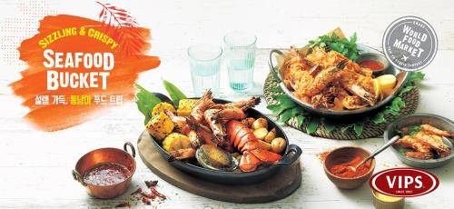 동남아식 씨푸드 메인 요리 2종은 '시즐링 씨푸드 버켓' '크리스피 쉬림프 버켓'이다.