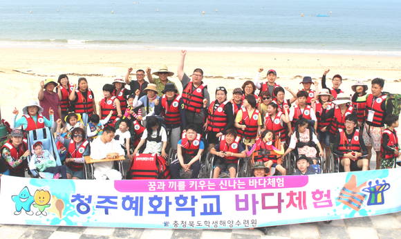 캠프에서는 바다수영, 바나나보트, 래프팅, 부채 만들기, 가족레크리에이션 등의 프로그램이 진행돼 인기를 끌었고, 이번 캠프에는 청주혜화학교 학생들과 가족, 인솔교사 등 71명이 참가했다.