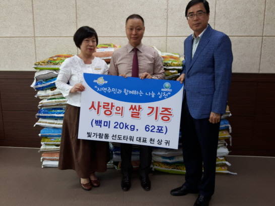 [프라임경제] 전남 나주시 빛가람동 상야 2길 22에 소재한 선도타워(대표 천상귀)가 이달 초 사무실 개소식에 축하화환 대신 받은 쌀 62포(백미 20kg)를 지역 소외계층에 전달해달라며, 지난 20일 빛가람동 지역사회보장협의체에 기탁했다.