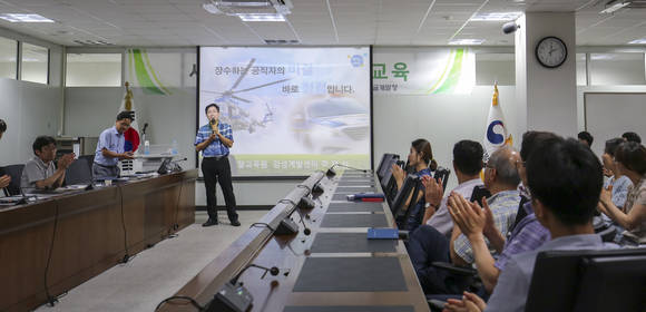 이날 교육에는 국민권익위원회 외부 강사로 활동 중인 경찰교육원 장재성 교수를 초청해 '장수하는 공직자의 비결, 바로 청렴입니다'를 주제로 부정부패와 청렴실천 사례 위주의 특강을 진행했다.