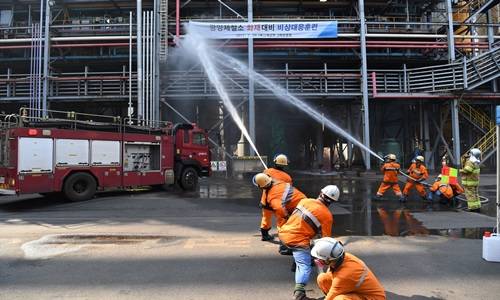 훈련은 △화재 발견 시 초기대응과 인명대피 △소방시설을 이용한 초기진압 및 소방부서간 합동 소화훈련 △부상자 구조 및 응급구호 △화학사고 대응 등으로 재난 발생시 직원들이 신속하고 정확하게 대응할 수 있도록 진행됐다.