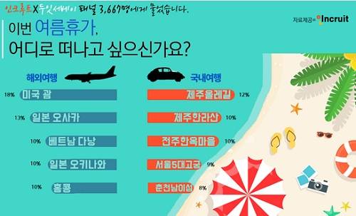 이종서 인크루트 주임은 "여행이란 생각만 해도 들뜨는 단어"라며 "이번 설문조사를 통해 많은 직장인들이 설레는 여름 휴가계획을 세워보는 계기가 됐으면 좋겠다"고 말했다.