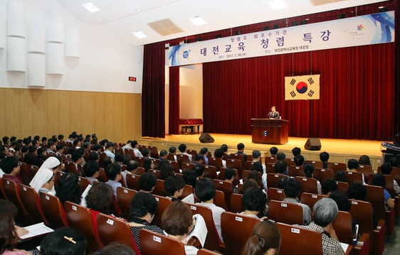 [프라임경제] 대전광역시교육청(교육감 설동호)은 26일 전체 기관 및 학교의 청탁방지담당관 300여 명을 대상으로 시교육청 대강당에서 청렴특강을 실시했다.