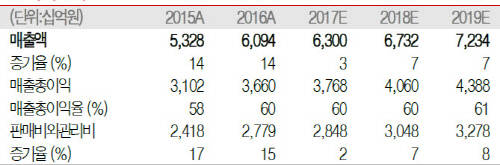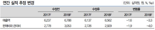 한편 LG생활건강 역시 판관비를 마냥 줄이지 않을 것으로 보인다. 2016년 이 회사의 판관비는 2조7790억원선으로 전년동기 대비로도 14.9% 증가했다. 대신증권은 △2017년(추정) 2조7260억원 △2018년(추정) 2929억원 등의 판관비 지출이 있을 것으로 내다본다.