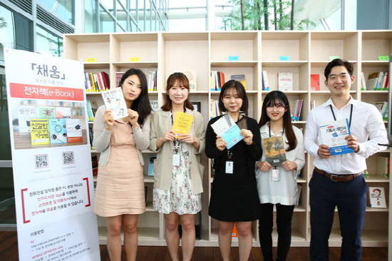 한화건설은 매달 직원들이 읽고 싶은 책을 조사해서 그 책을 구입해서 도서관에 놓아 두고 있어요.