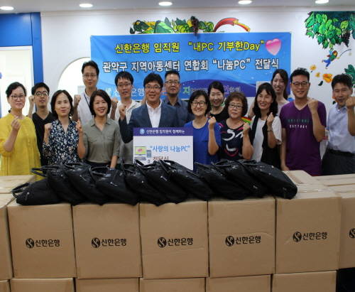 [프라임경제] 신한은행 임직원들이 '내 피시(PC) 기부한데이(Day)' 행사를 통해 관악지역아동센터 연합회에 노트북과 PC 등을 전달했다.