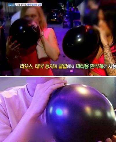 마약을 한 것 같이 힘이 풀리고 이상한 기분이 들어서 '마약풍선'이라고 해요. 잠깐이지만 걱정이나 스트레스를 잊을 수 있어서 어떤 대학생들은 궁금해 하면서 이 풍선 속에 든 공기를 마셔봤다고 해요.