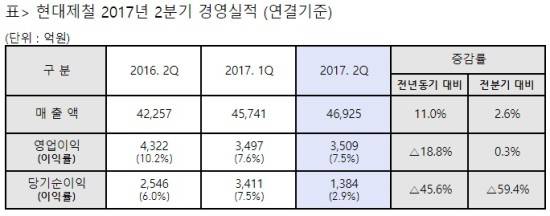 [프라임경제] 현대제철(004020)은 28일 2분기 실적발표를 통해 매출액 4조6925억원, 영업이익 3509억원을 기록했다고 밝혔다.