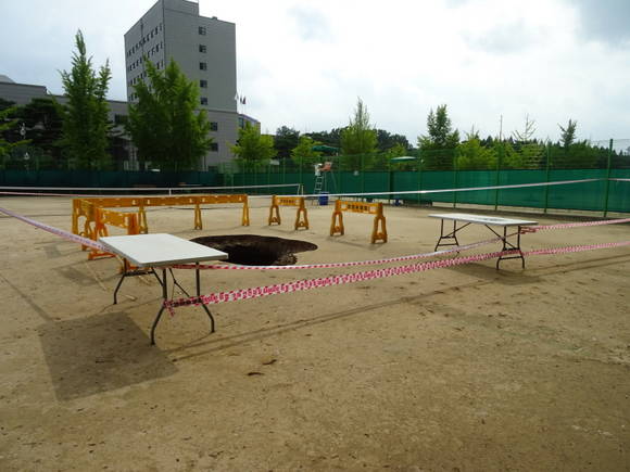 싱크홀은 원래 석회암이 물에 녹아 도로에 동공이 생기는 지질현상을 말하는데, 우리나라에서 생기는 싱크홀은 대부분 노후된 상·하수도와 지하시설물 공사로 일어난 침식문제로 발생하며 비가 많이 오는 장마철에 그 현상이 두드러진다.