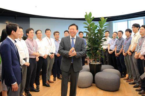 신 회장은 이날 17층과 18층에 위치한 경영혁신실 업무 공간 등을 둘러보고, 임직원들을 격려하는 시간을 가졌다.