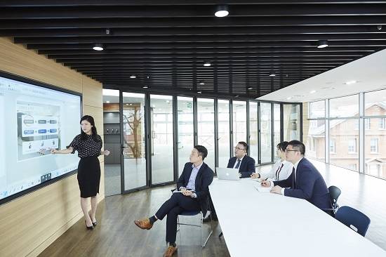 4K HDMI와 클라우드 기반의 대형 전자스크린을 활용해 세계 각 지사와 끊김 없이 화상회의를 진행할 수 있다. 기존 QR코드의 한계를 극복한 스카이데스크 미디어 스위치를 도입해 커뮤니케이션의 확장성과 효율성을 직접 실감할 수 있게 했다.