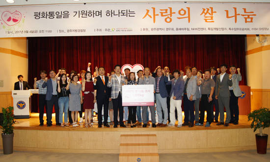 이날 행사는 광주광역시 경우회, 중해마루힐, 특임개발산업(주), 특수임무유공자회 등이 함께 참여해 탈북민 봉사단체 '한마음 봉사단' 을 통해 사랑의 쌀 약 2톤을 기부했다.