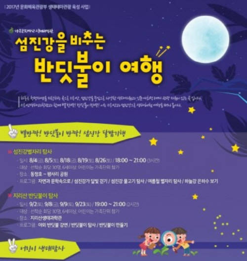[프라임경제] 경상남도 하동군에 있는 '지리산생태과학관'에서 8월부터 9월까지 섬진강과 악양면 근처에서 '섬진강을 비추는 반딧불이 여행' 행사를 열어요.