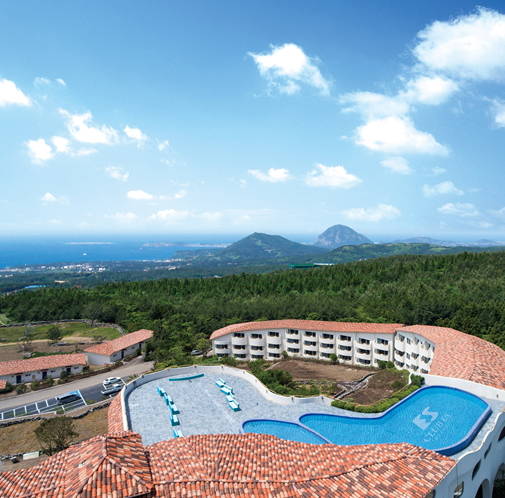 옥상 풀장에서 바라 본 제주의 일몰 또한 장관이다. 이 밖에도 일본인 쉐프가 텃밭에서 기른 유기농 채소로 요리하는 이탈리안 스타일 다이닝홀 △풀사이드 라운지 바 △키즈룸 △공연장 △연회장(대·중·소) △멤버스룸 △편의점 등의 부대시설을 갖췄다.