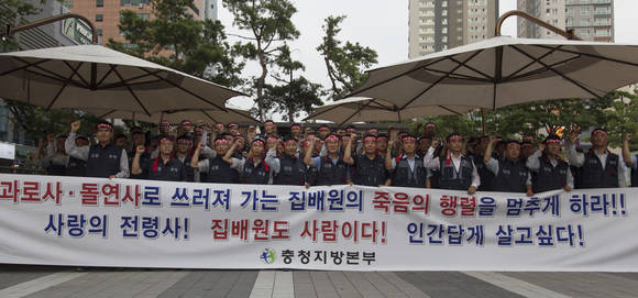 [프라임경제] 전국우정노동조합 충청지방본부 유성우체국지부는 8일 오후 유성우체국 앞에서 집회를 열고 집배원 과로사 근절 및 장시간 중노동 철폐 촉구하며 우정사업본부를 규탄했다.