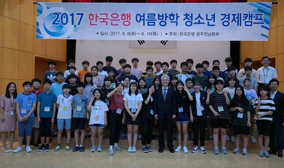 [프라임경제] 한국은행 광주전남본부(본부장 박양수)가 광주·전남지역 중학생 60명을 대상으로 8일부터 10일까지 '2017년 여름방학 청소년 경제캠프'를 개최했다.