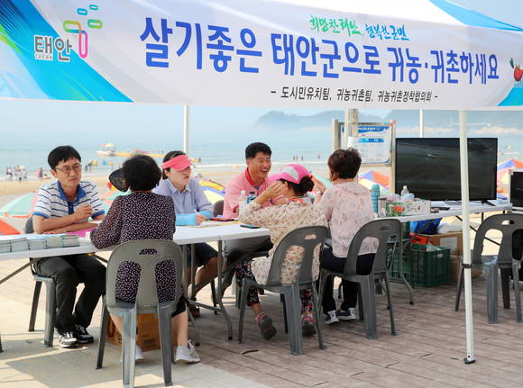 군은 지난 10일부터 11일까지 이틀간 태안의 대표 해수욕장으로 손꼽히는 만리포해수욕장과 꽃지해수욕장에서 '찾아가는 도시민 유치 홍보 및 상담'을 실시했다.