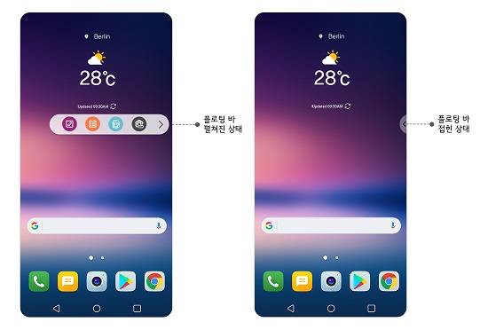 LG전자는 기존 V 시리즈에서 선보인 세컨드 스크린의 편의성을 '플로팅 바(Floating Bar)'로 계승했다.