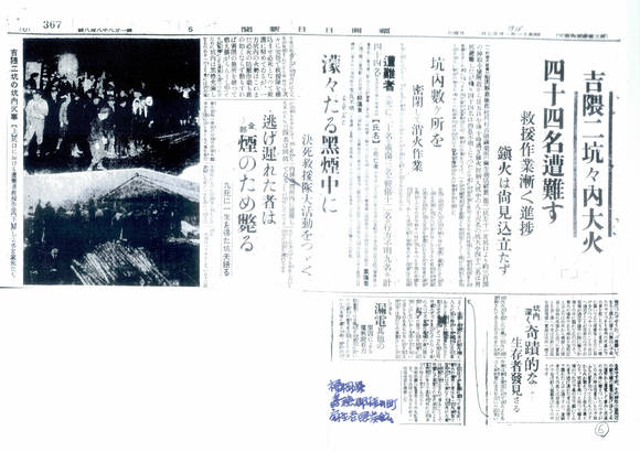 아울러 아소 요시쿠마(麻生吉隈) 탄광(후쿠오카) 갱도사고(1936년) 관련 당시 신문 보도내용 등도 주목된다.