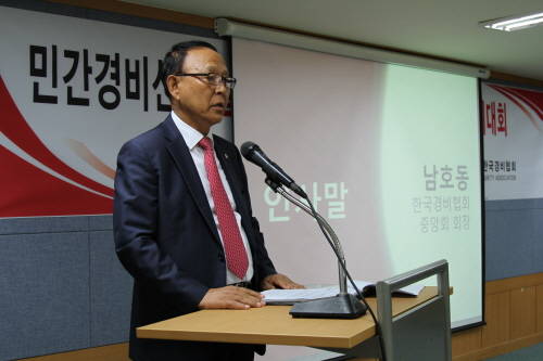 남호동 한국경비협회 중앙회 회장은 인사말에서 공공부문 12만명에 달하는 공공부문 파견용역근로자의 정규직 전환이 향후 민간부문까지 번질 것은 자명하니 이에 따른 협회차원의 대책을 강구하고 있다고 전했다.