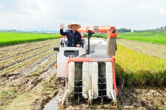 황선봉 군수는 이날 벼 베기 현장에 참석해 극심한 봄 가뭄을 극복하고 최고 품질의 벼를 생산한 농민의 노고를 격려했다.
