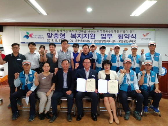 [프라임경제] 보령시 웅천읍은 지난 7월1일 권역형(웅천읍,주산면,미산면) 맞춤 복지팀이 신설됨에 따라 웅천우체국과 손잡고 독거노인 및 소외계층을 위한 맟춤형 민원·복지서비스를 제공하기 위해 업무협약을 맺었다고 18일 밝혔다.