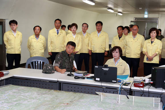 이날 김양희 의장과 의원들은 을지연습 상황실을 둘러보고 종합 상황보고를 청취한 후 훈련에 참여한 공무원과 군인, 유관기관 직원들의 노고를 격려하기 위한 위문품을 전달했다.
