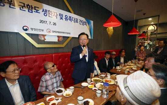 김부겸 행정자치부장관은 지난 7월26일 영화 '군함도'를 상영하는 영화관에 가서 일제강점기때 억지로 끌려갔던 희생자와 돌아가신 분들의 가족들과 함께 영화를 관람했어요. 이날 행사에는 일제강점기 시절 강제로 끌려가서 일하던 일본 섬인 군함도에 갔던 분들 중에서 실제로 살아계신 이인우(94), 최장섭(90)님이 가족과 함께 참여했어요.