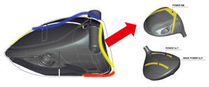 임팩트 순간 크라운 전체가 파도 형태로 찌그러졌다가 복원되면서 폭발적인 볼 스피드를 실현했고, 크라운 앞 부분에 위치한 파워 슬릿이 크라운 중심에 설계된 웨이브 파워 슬릿을 만나면서 볼을 튕겨내는 힘이 더욱 강해졌다.