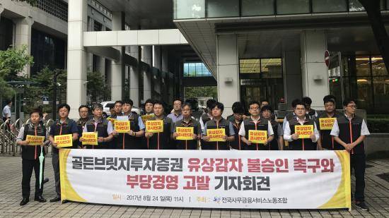 우리사조조합 측은 "골든브릿지투자증권의 유상감자를 위한 승인 심사 시 재무건전성 외 경영건전성과 대주주의 적격성을 적극적으로 심사해야 한다"며 "노사 간 대립이 있다는 이유로 형식적인 재무건전성 지표만 소극적으로 심사하는 면피행정을 행해서는 안 된다"고 말했다.