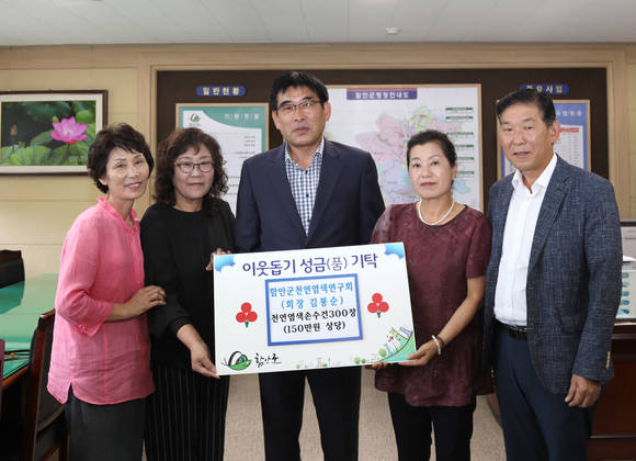 이날 기탁식에서는 20여명의 천연염색연구회원들이 직접 물들여 만든 손수건이 전달됐으며, 군은 관내 어려운 세대에 이를 전달할 예정이다.