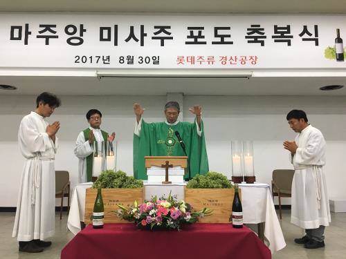 [프라임경제] 롯데주류(대표 이종훈)는 30일 경북 경산시에 있는 롯데주류 경산공장(경산시 진량읍 평사리)에서 '제40회 마주앙 미사주 축복식'을 진행했다.