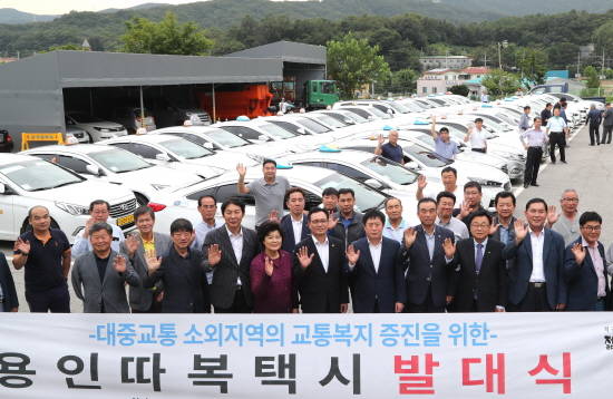 경기 용인시는 30일 처인구 원삼면사무소에서 따복택시에 참여한 46대의 개인택시가 모인 가운데 전국 최초의 전자쿠폰 방식으로 운영되는 용인따복택시 발대식을 갖고 9월1일 정식으로 운영을 시작한다고 밝혔다.