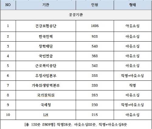 특히 가장 많이 사용하는 공공기관 상위 10곳은 90% 이상 아웃소싱을 활용하고 있다. 지자체도 소규모로 운영하지만 컨택센터 운영 업체의 전문성과 높은 효율성으로 아웃소싱을 선호하고 있다.