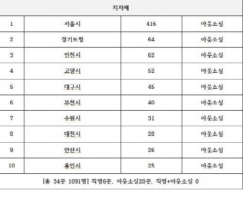 세부적으로 살펴보면 공공기관 120곳의 컨택센터 중 아웃소싱으로 운영되는 곳은 88곳 6973명이며, 직영은 26곳 1367명, 직영+아웃소싱은 6곳 569명이다. 지자체는 총 34곳 1091명으로 이 중 직영은 6곳 47명이며 아웃소싱은 28곳 1044명이다. 지자체는 직영과 아웃소싱을 병행운영하는 곳은 한 곳도 없는 것으로 조사됐다.