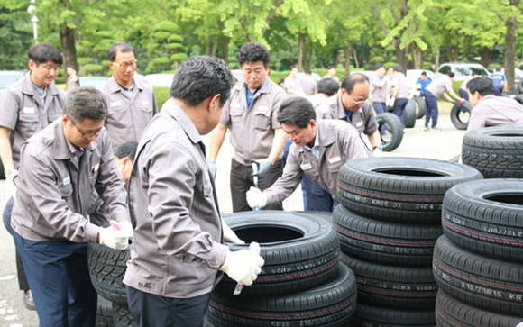 이날 행사에 참석한 사람들은 타이어 500개 정도를 스스로 잘랐는데요, 정성 들여 만든 타이어를 직접 잘라서 마음은 아팠어요. 하지만 고객들의 안전과 만족도를 가장 먼저 생각하고 상품의 질을 높이기 위해 함께 노력할 것을 약속했어요.
