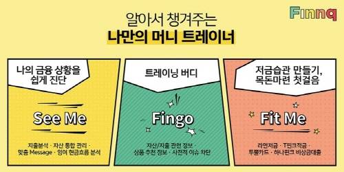 주요 서비스에는 △인공지능(AI) 챗봇 '핀고(Fingo)'를 통한 개인 지출관리 및 금융상품 추천 △수입·지출 현황을 쉽게 분석하고 여러 금융기관의 계좌내역을 한 곳에서 조회·집계하는 '씨미(SEE ME)' △은행·통신사·카드사의 적립 혜택을 모아주고 결제 금액 중 일부를 자동 저금하는 '핏미(FIT ME)'가 있다.